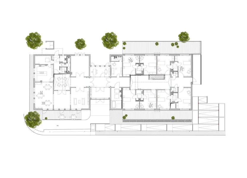 Gemeinschaftsräumen, sowie den Wohnbereich der Patienten.